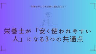 はじめに栄養士として働いていて、「なんとなくしんどい」「仕事のことを考えるだけで憂鬱になる」「頑張っているのに、誰も評価してくれていない気がする」そんな感覚を抱いたことがある人は、きっと少なくありません。保育園、病院、給食委託、老人ホーム、...
