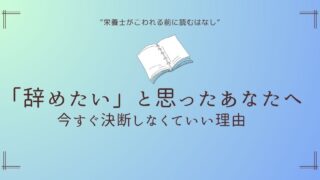 仕事で失敗が続くと、「こんなミスをするなんて、私、栄養士に向いていないよね…」そう思ったことは一度や二度じゃありません。「転職サイトを見る=もう辞めると決めた人がやること」以前の私はそう思っていました。だから、まだこの仕事を辞めるかどうか迷...